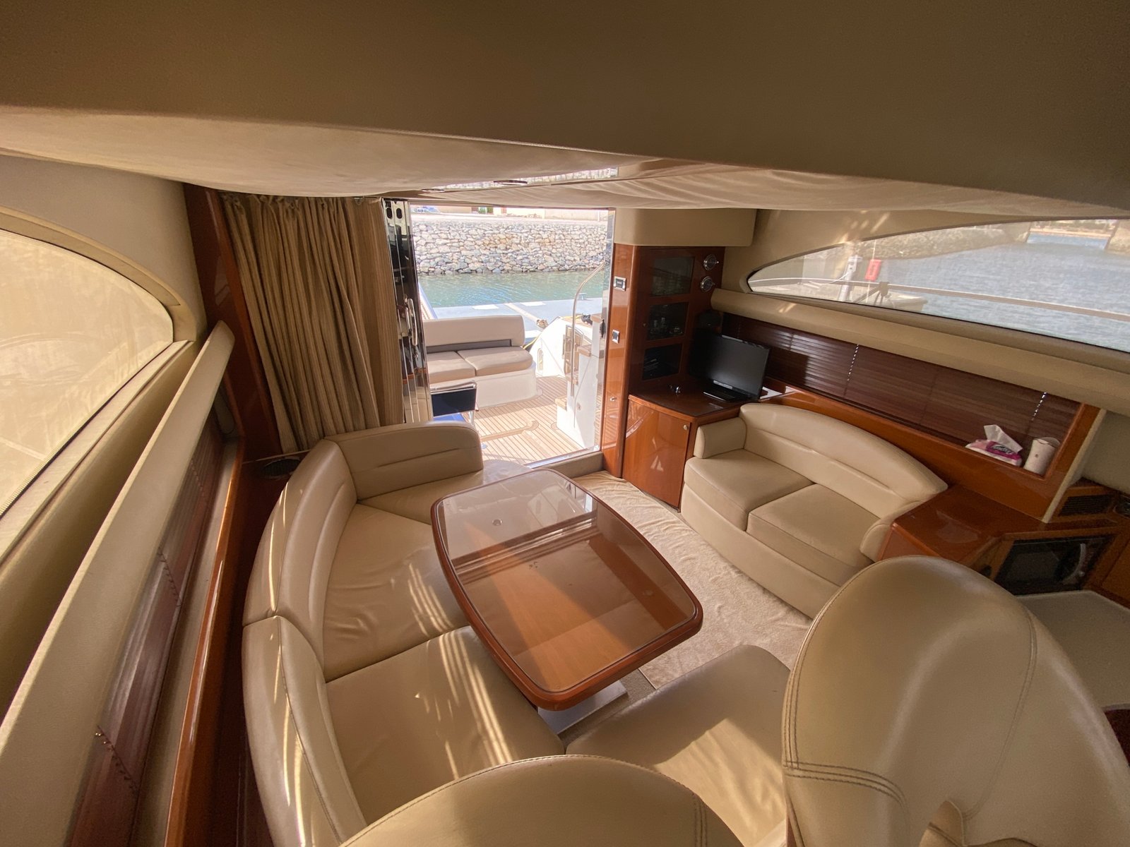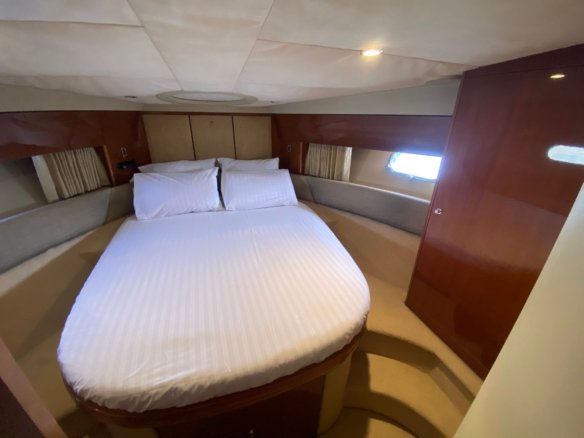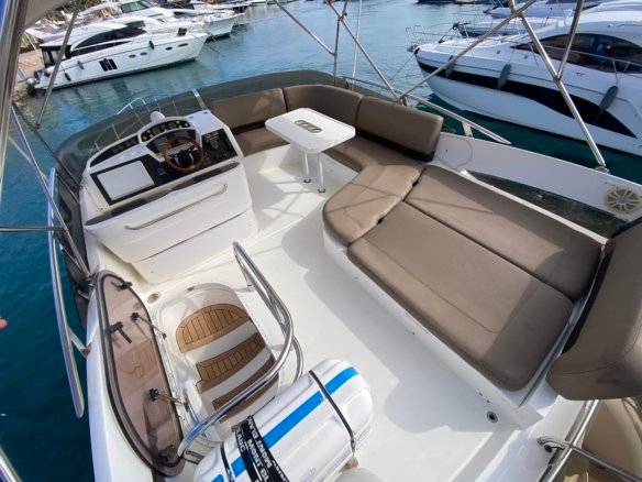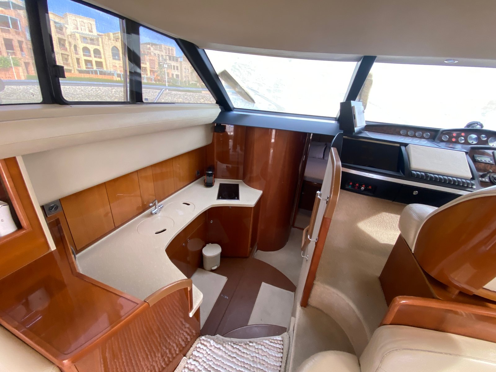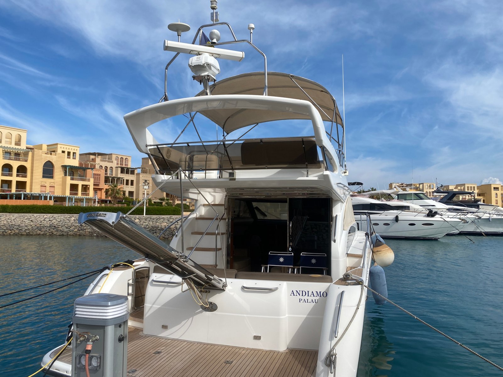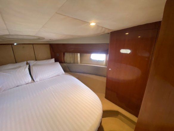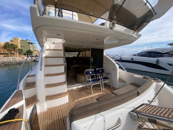 The Princess 42 Fly is a two cabin family cruiser with overnight capability. It is powered bye twin CAT engines, has a water maker and tender lifting passarelle.