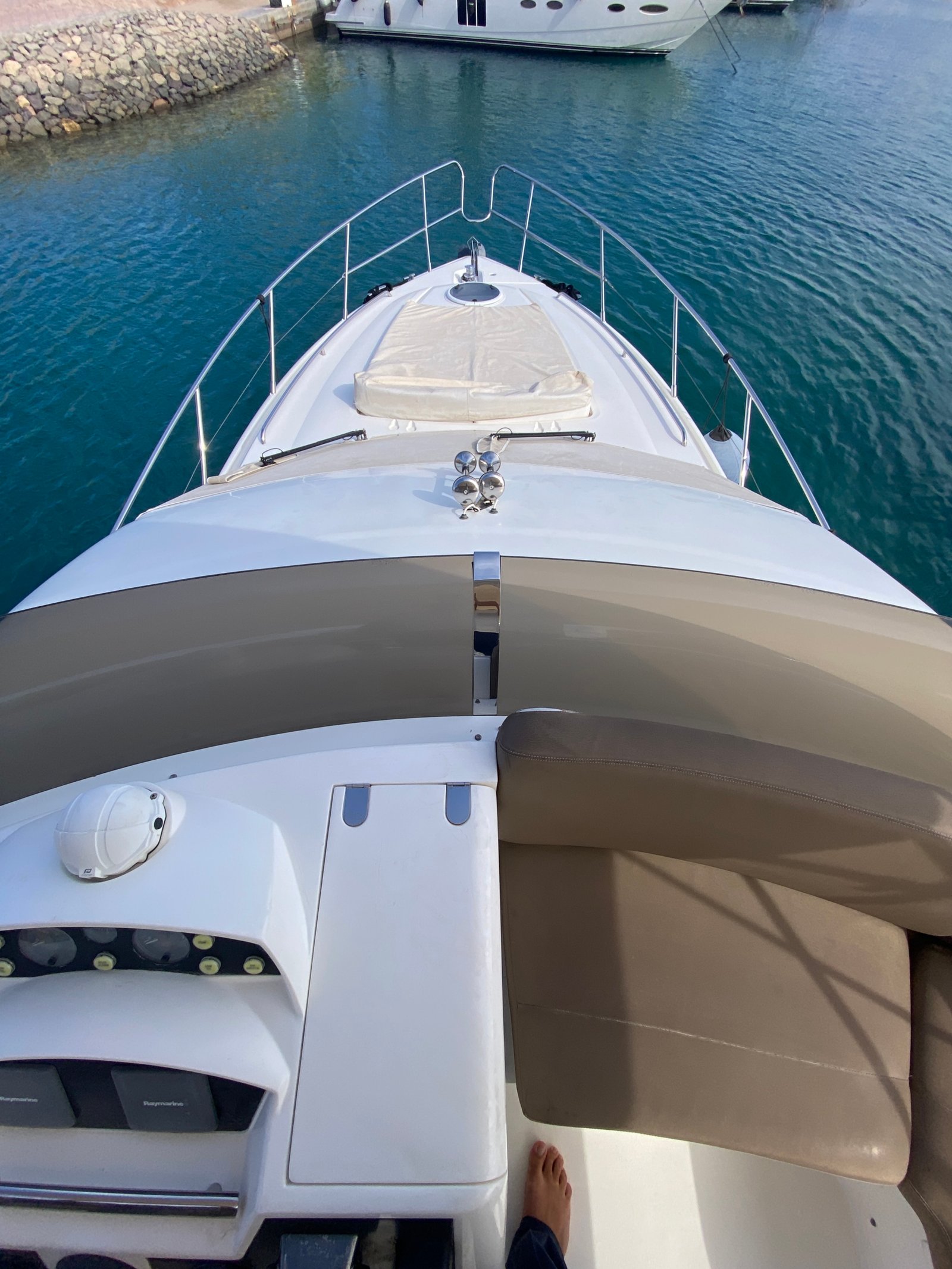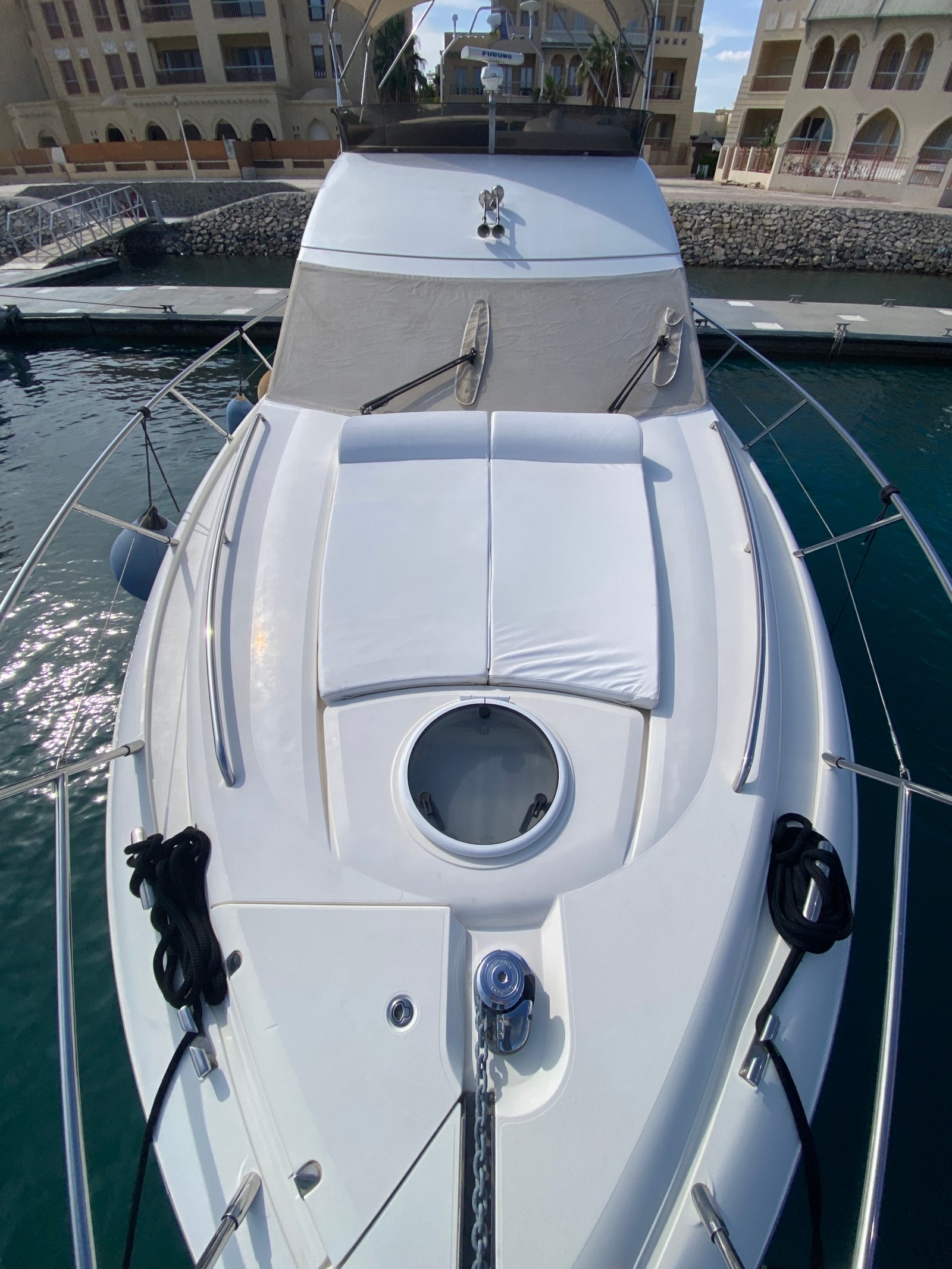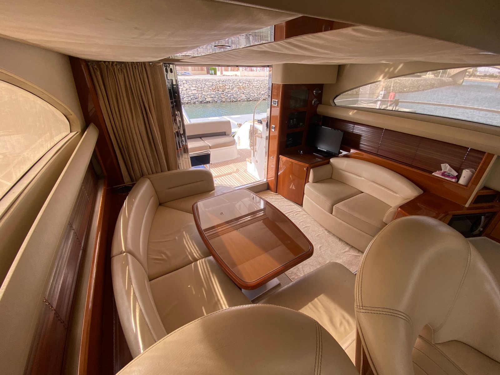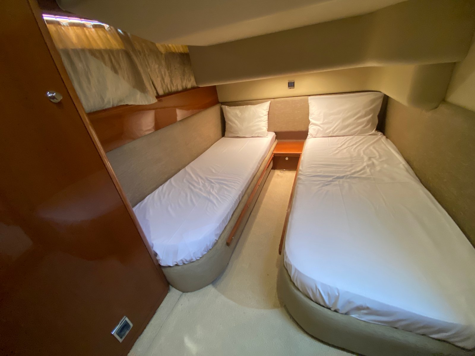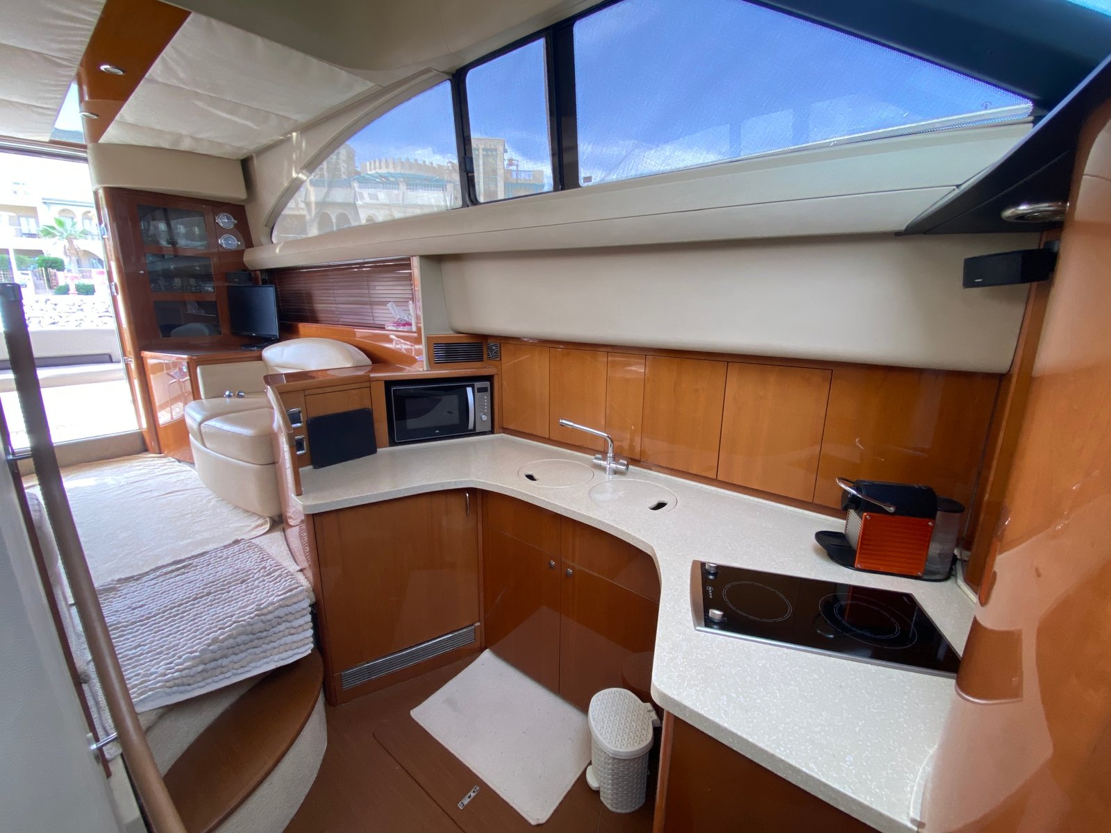 The Princess 42 Fly is a two cabin family cruiser with overnight capability. It is powered bye twin CAT engines, has a water maker and tender lifting passarelle.