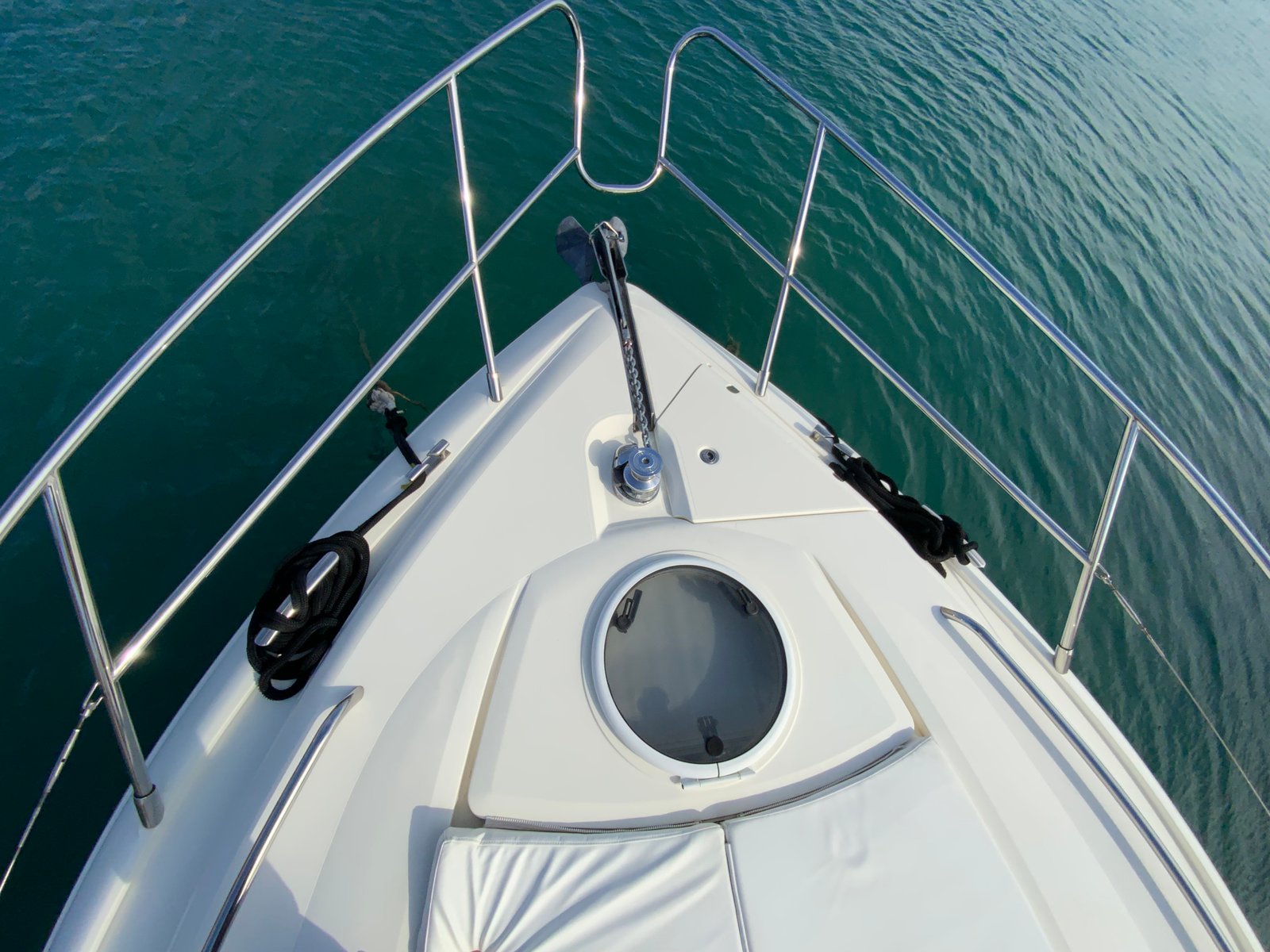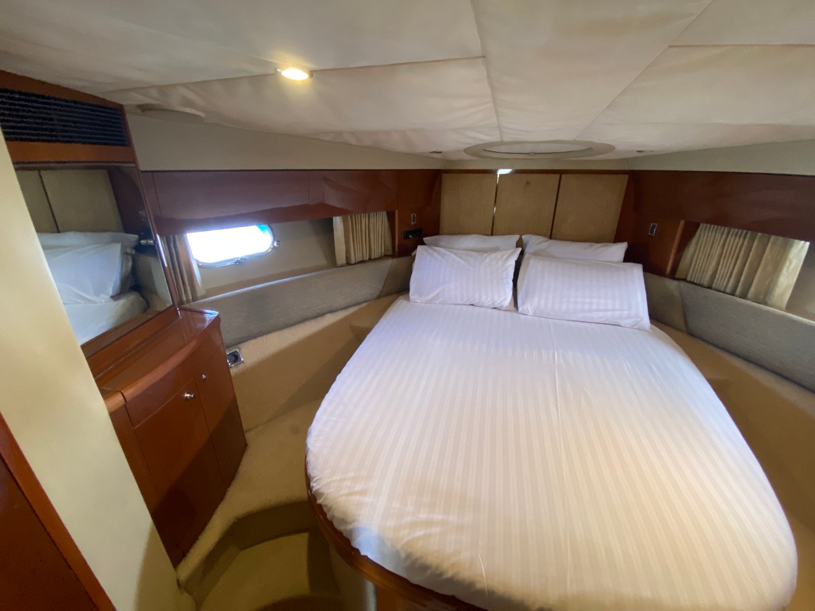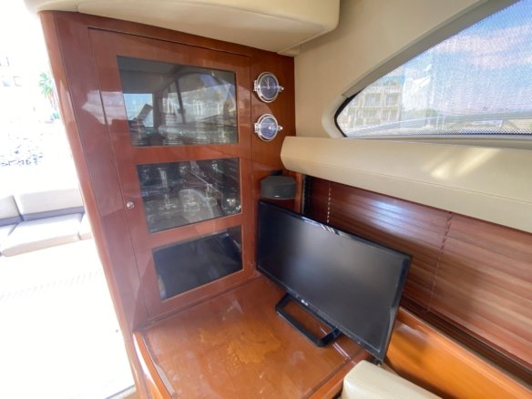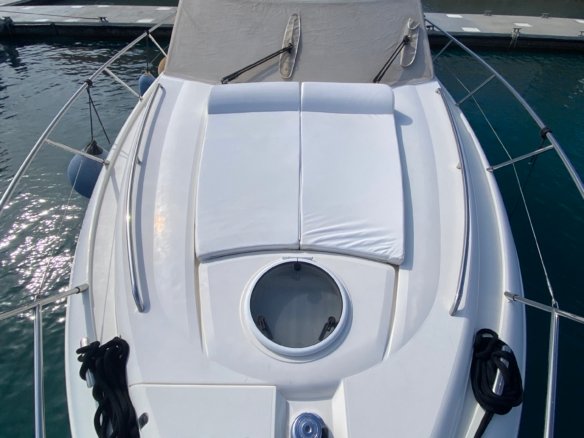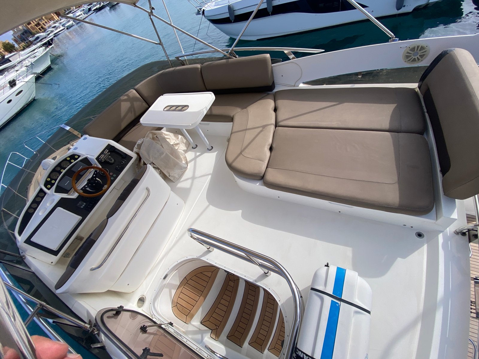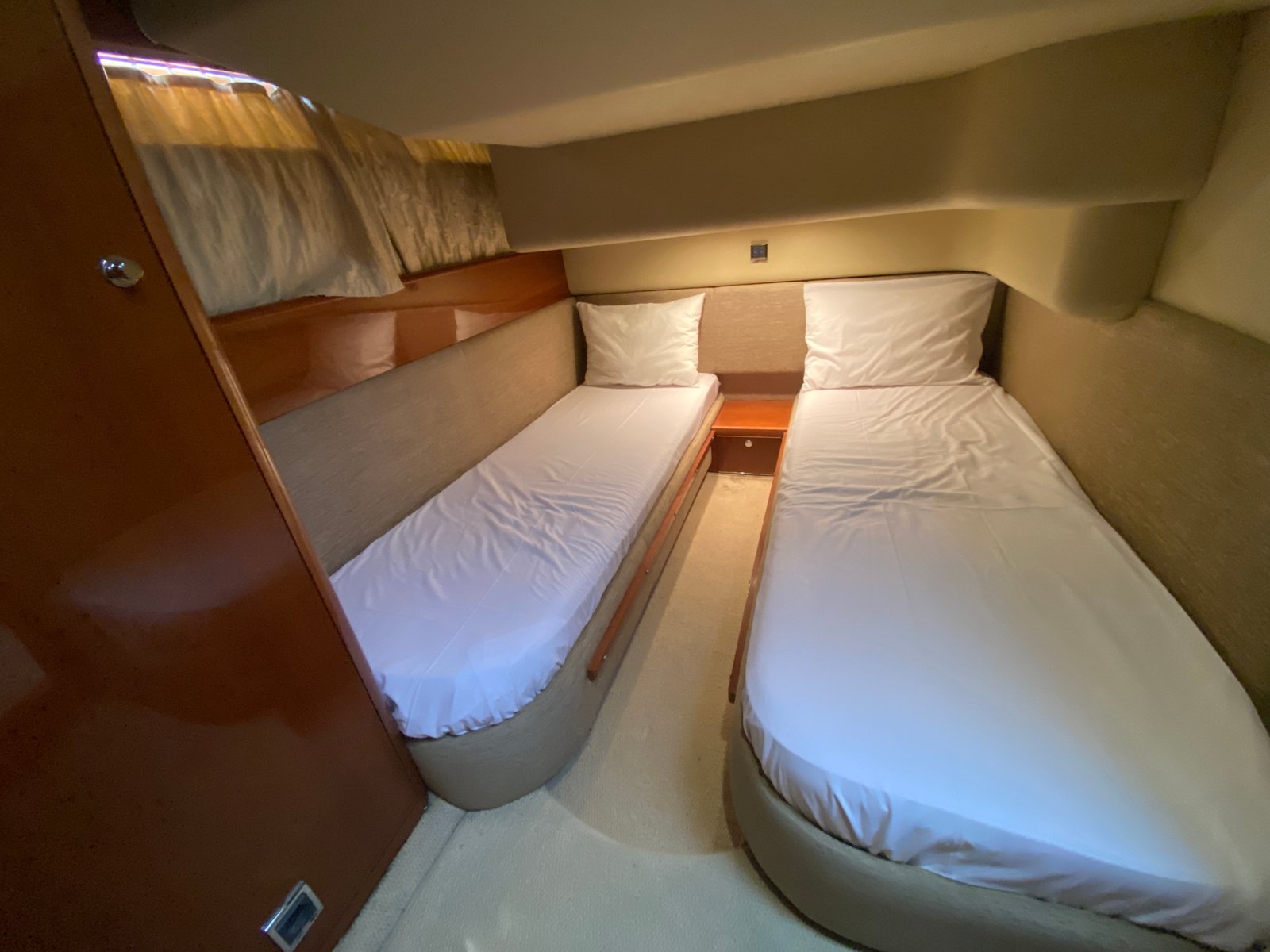 The Princess 42 Fly is a two cabin family cruiser with overnight capability. It is powered bye twin CAT engines, has a water maker and tender lifting passarelle.