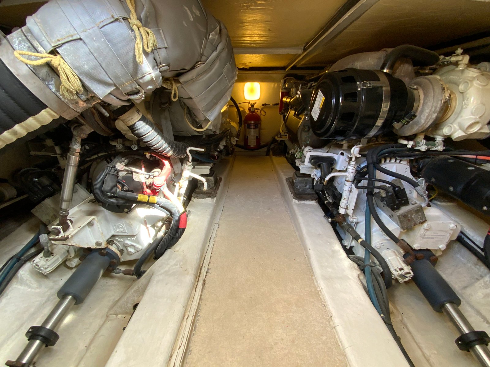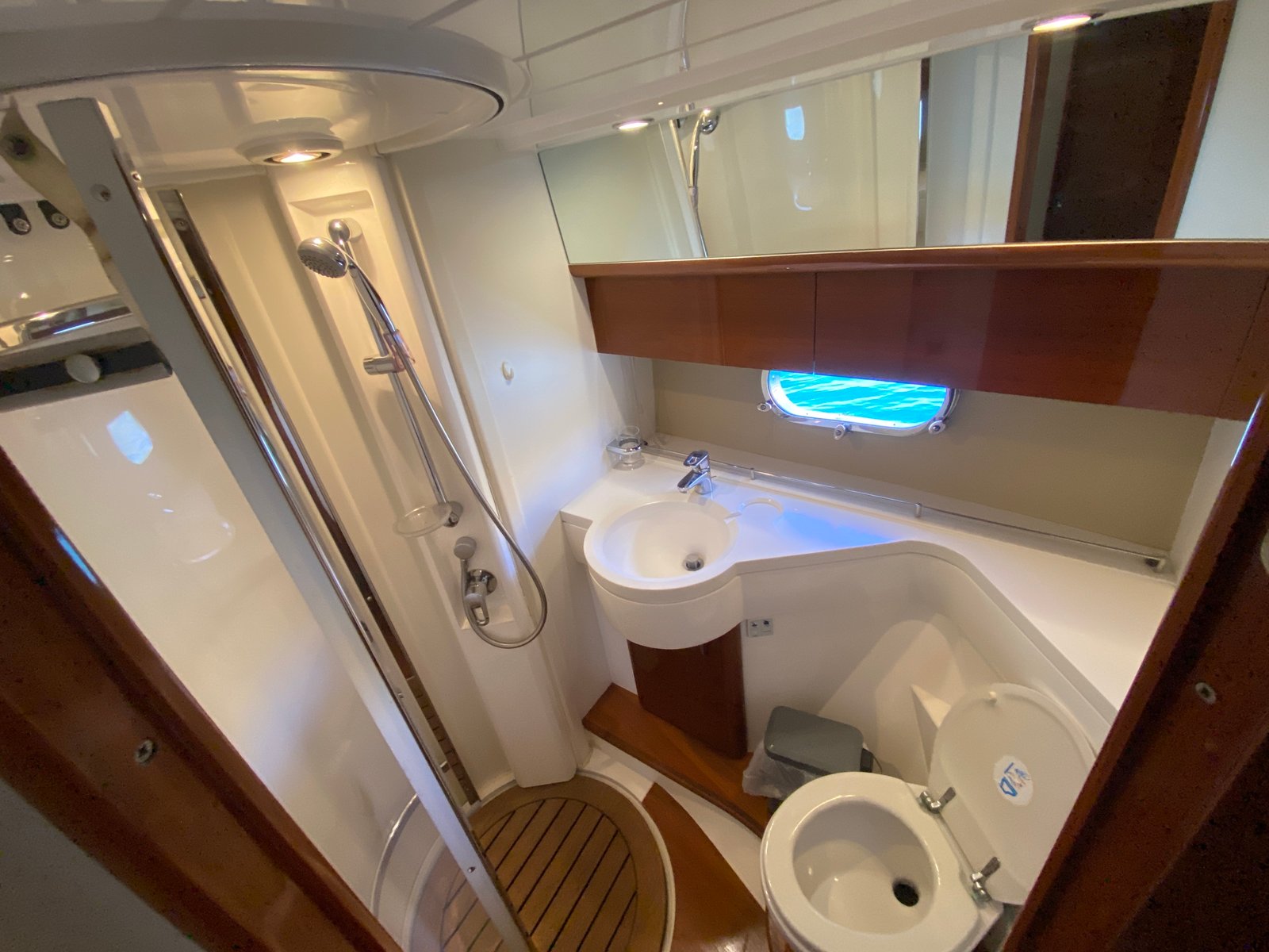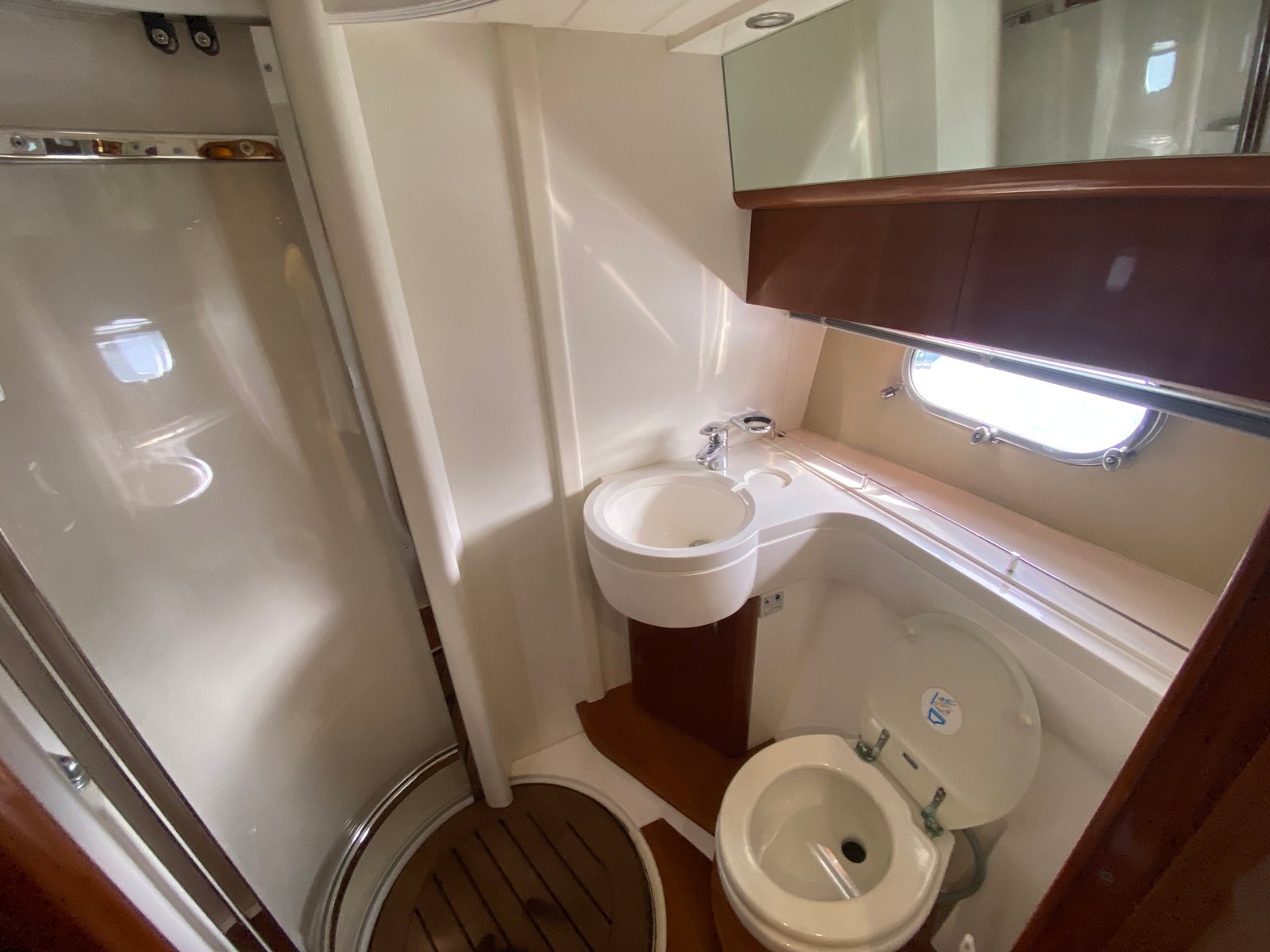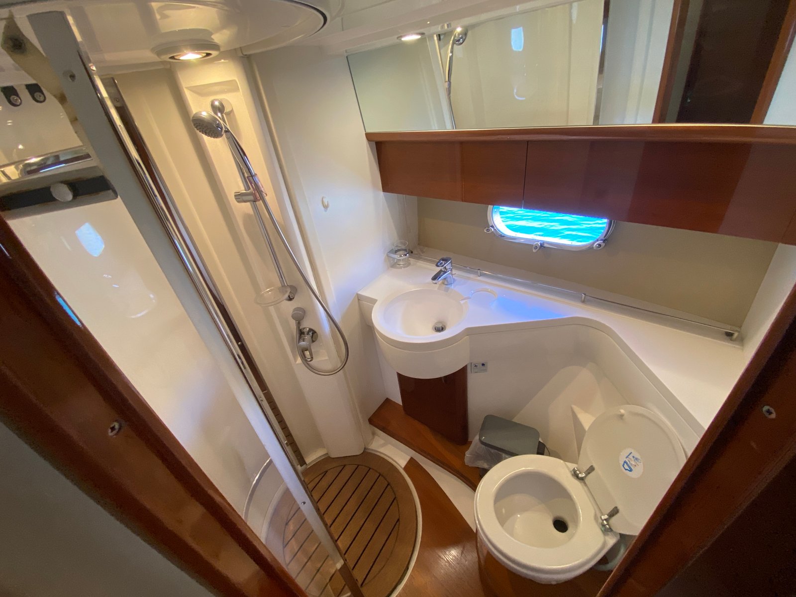 The Princess 42 Fly is a two cabin family cruiser with overnight capability. It is powered bye twin CAT engines, has a water maker and tender lifting passarelle.
