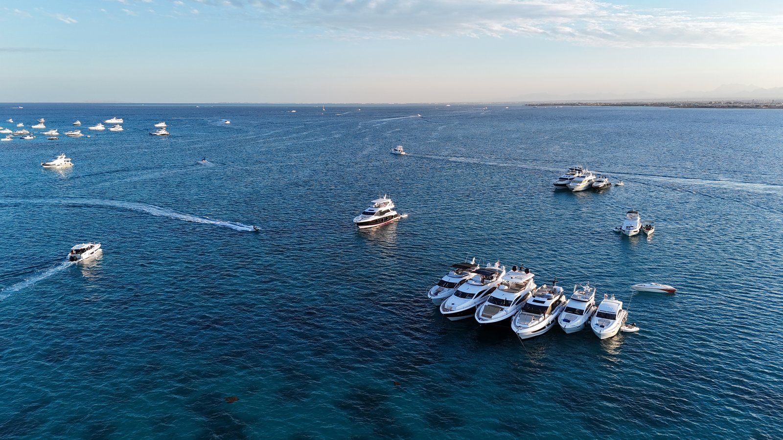 The Red Sea offers a charter experience shaped by marine life exploration, clear water visibility, and island hopping. Days are spent in and around the water — swimming, snorkeling, diving, kayaking, fishing, and engaging in water sports such as skiing and kiting.